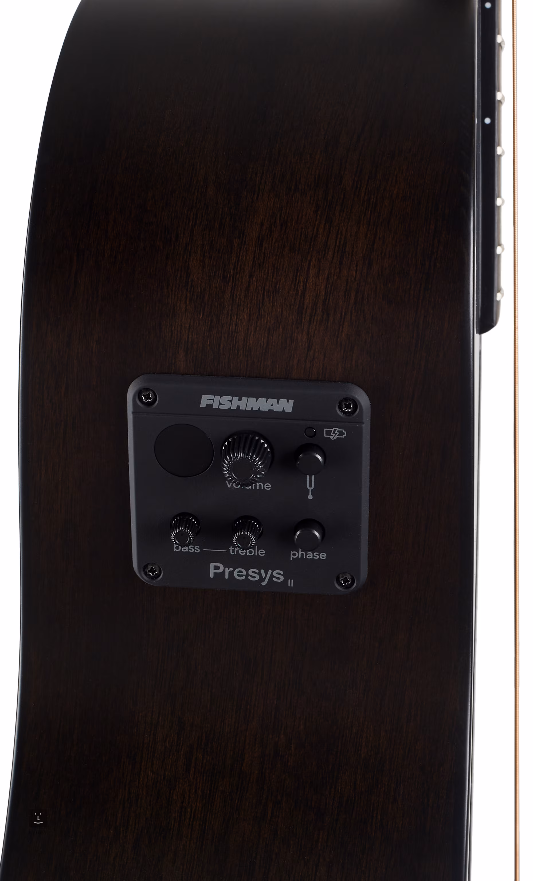 Věrnou reprodukci akustického zvuku zaručuje preamp Fishman Presys II s ovladačem hlasitosti, dvoupásmovým ekvalizérem, integrovanou ladičkou a tlačítkem Phase, kterým v případě potřeby otočíte fázi signálu.