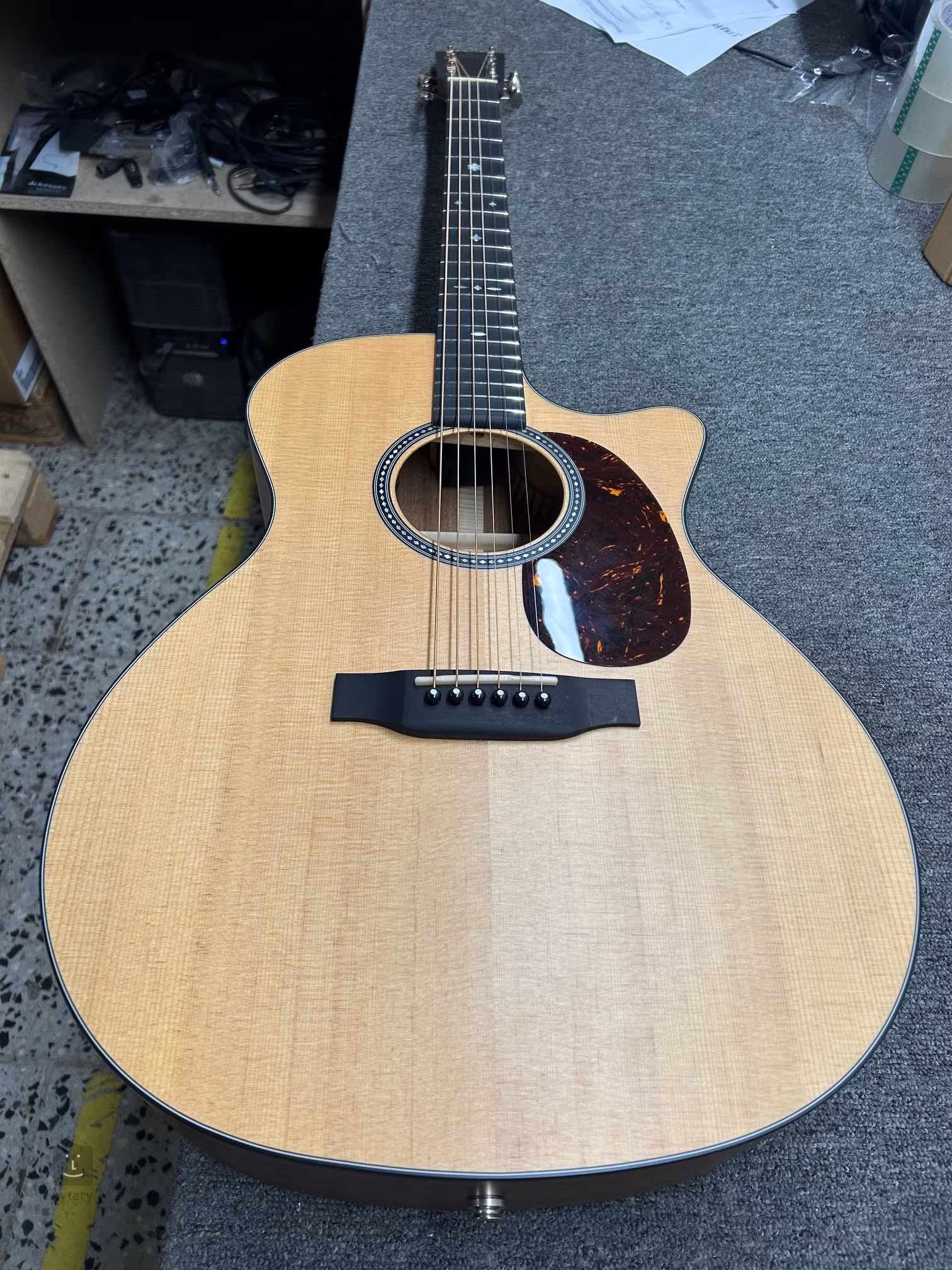 O ozvučení kytary se stará preamp L. R. Baggs EAS-VTC s podkobylkovým piezo snímačem a ovládacími prvky Volume a Tone decentně umístěnými do ozvučnicového otvoru nástroje. Struny jsou ukotveny v otevřených niklových mechanikách značky Grover s kolíčky Butterbean. Nultý pražec a kompenzované sedlo z kosti zaručují ideální přenos vibrací strun. Stylovost nástroje podtrhují tradiční prvky v podobě pickguardu z imitace želvoviny, rozety, obvodové lemovky těla a firemního loga na na hlavici nástroje.