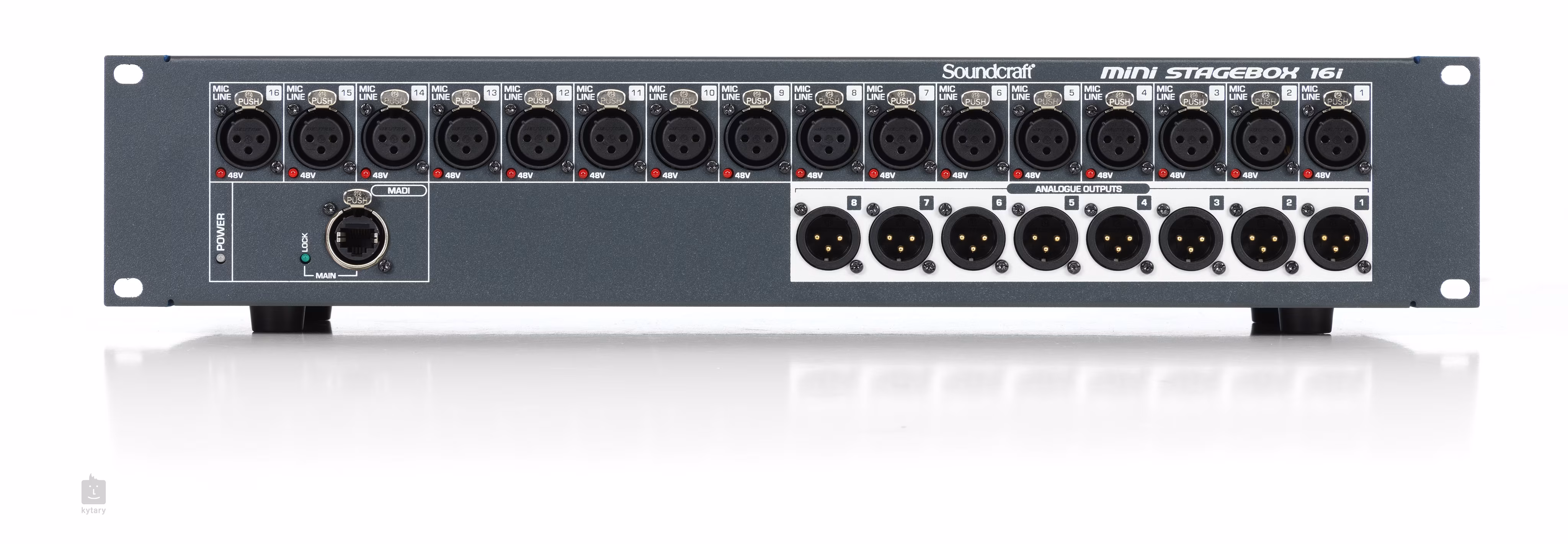 AudioRack Mini Stagebox 16i přináší jednoduché řešení pro pódiová zapojení a významně tak rozšiřuje možnosti Vi/Si digitálních mixážních pultů. Zabírá minimální potřebné množství místa (2U rack space), přitom poskytuje 16 mikrofonních/linkových vstupů a 8 linkových výstupů. K propojení s mixážními pulty pomocí kabelů RJ45/Cat5 slouží optické rozhraní MADI.
