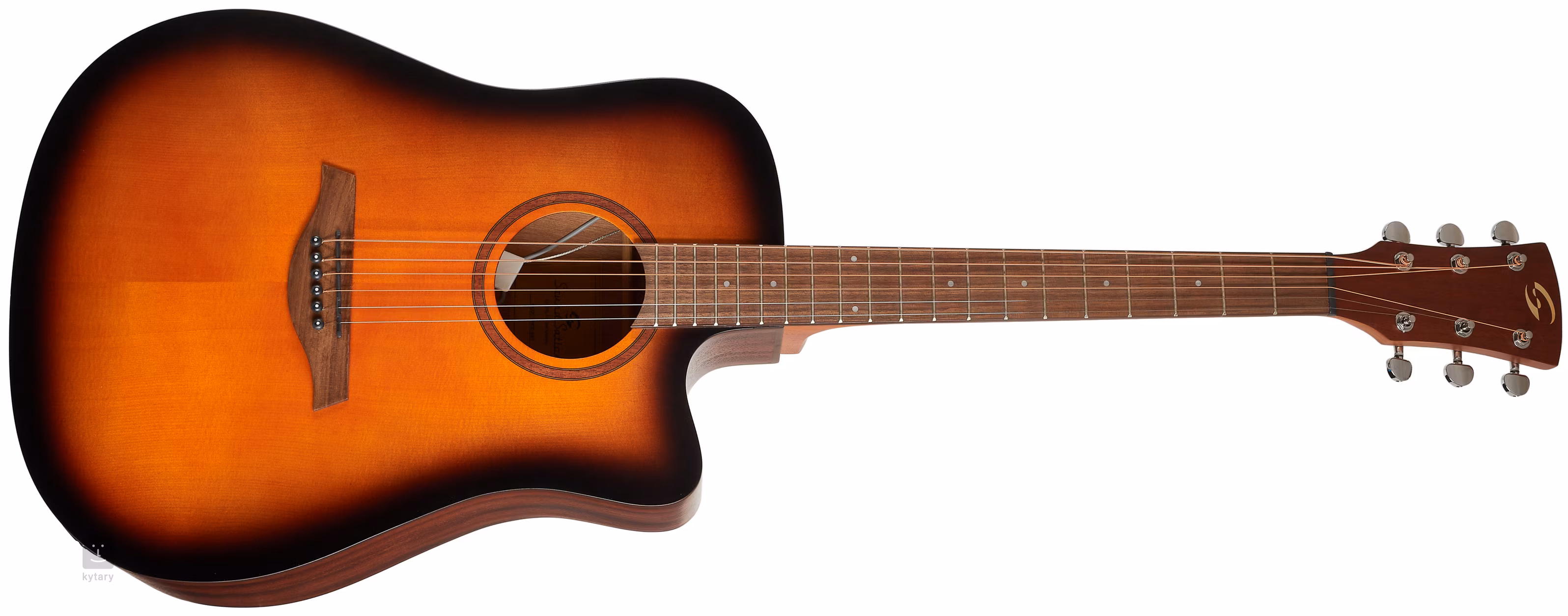 Elektroakustická kytara CODY DNCE-SBT nabízí přední desku z překližovaného smrku, zadní desku a luby z překližovaného sapele, krk z okoumé s příjemným C profilem, ořechový hmatník osazený dvaceti pražci, ořechovou kobylku, chromované die-cast ladící mechaniky a finiš open-pore sunburst satin.