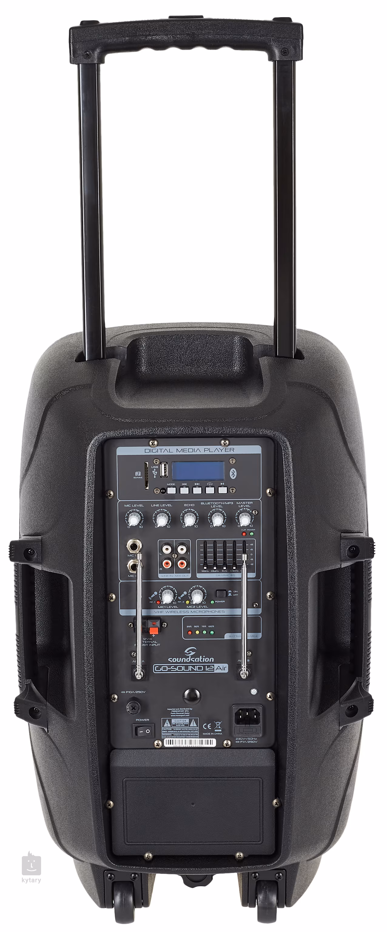 Go-Sound 12 Air obsahuje 12“ basový a 1“ výškový reproduktor, které vám spolu se zesilovačem třídy AB zprostředkují maximální výkon až 800 W. Zadní panel potom nabízí přehledný LCD displej včetně ovladačů a potenciometrů pro úpravu EQ, Echo efektu, Volume jednotlivých vstupů včetně bezdrátových mikrofonů a Master level. Dále vám zajistí flexibilní konektivitu v podobě dvou linkových vstupů, RCA vstupů, slotu pro SD kartu a USB portu, nebo linkových výstupů pro připojení do dalšího PA systému. Go-Sound 12 Air je napájen prostřednictvím vestavěné baterie s výdrží až 4 hodin, veškeré jeho nastavení a stav baterie můžete sledovat v mobilní aplikaci Go-Sound Air App Control, která je plně kompatibilní se zařízeními s Android a iOS systémem. Reprobox můžete umístit na reproduktorový stojan a dvojice koleček, pár ručních madel nebo teleskopické ruční madlo vám zajistí pohodlný transport mezi produkcemi.