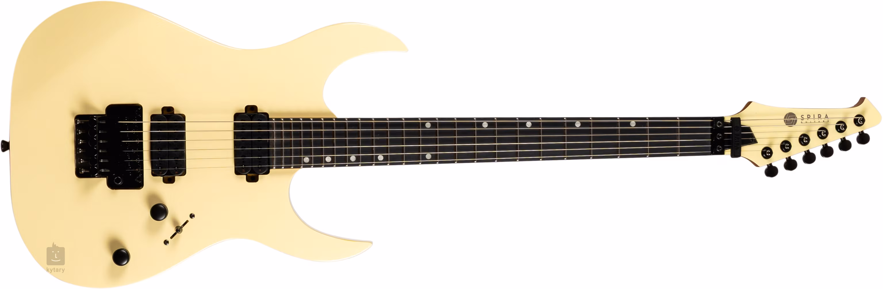 Dva firemní humbuckery Spira Villain s keramickými magnety a silnějším výstupem poskytují kytaře šťavnatý zvuk, který zvláště oceníte v high-gain nastavení. S nastavením zvuku lze pracovat pomocí standardních ovladačů. Struny jsou uchyceny ve firemních uzamykatelných ladicích mechanikách a v tremolu korejské značky Sung-il. Stylové zpracování podtrhuje černý hardware.