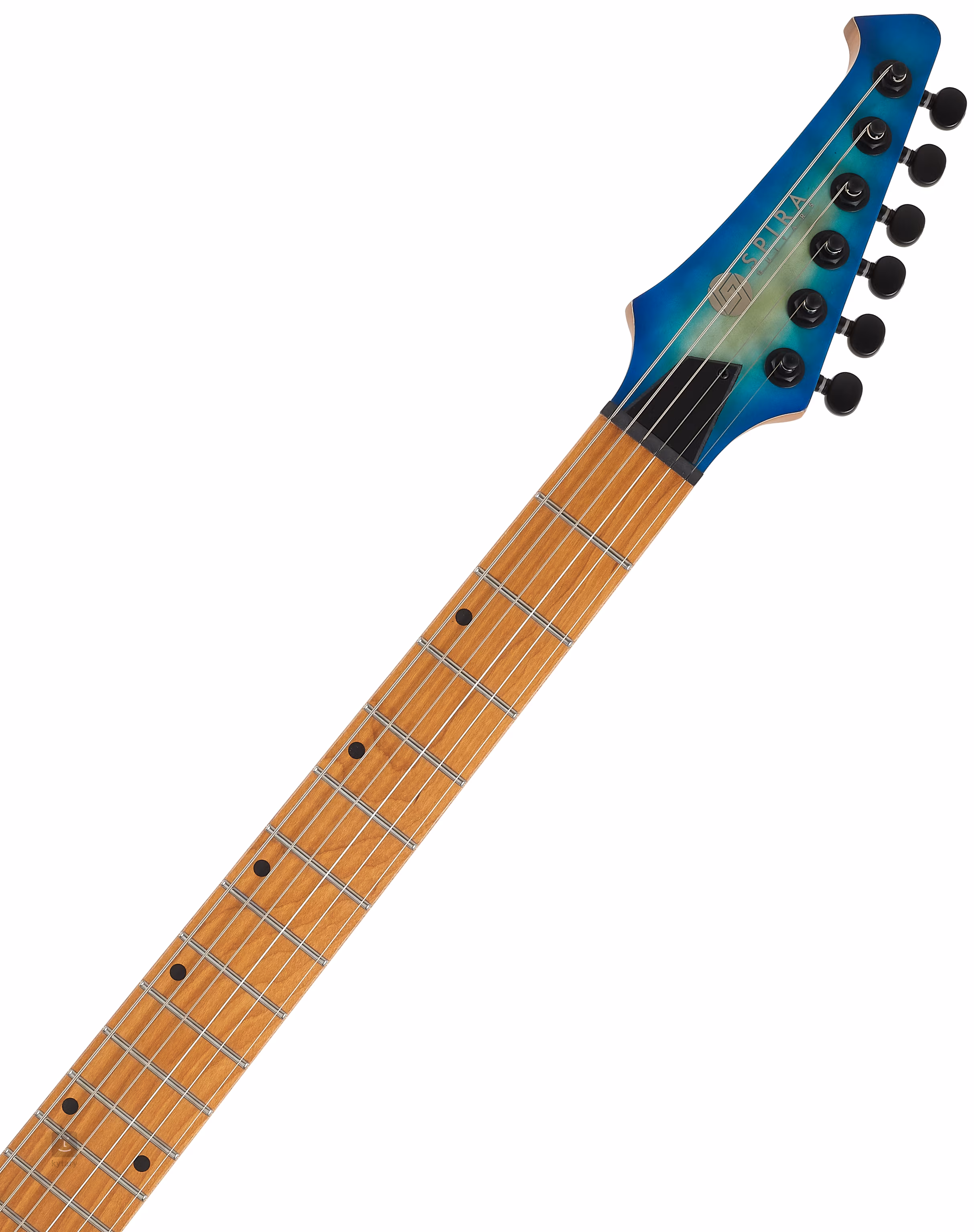 Dva firemní humbuckery Spira Villain s keramickým magnetem a silnějším výstupem poskytují kytaře šťavnatý zvuk, který zvláště oceníte v high-gain nastavení. S nastavením zvuku lze pracovat pomocí standardních ovladačů. Struny jsou uchyceny ve firemních uzamykatelných mechanikách a přes pevnou kobylku skrze tělo. Stylové zpracování podtrhuje černý hardware.