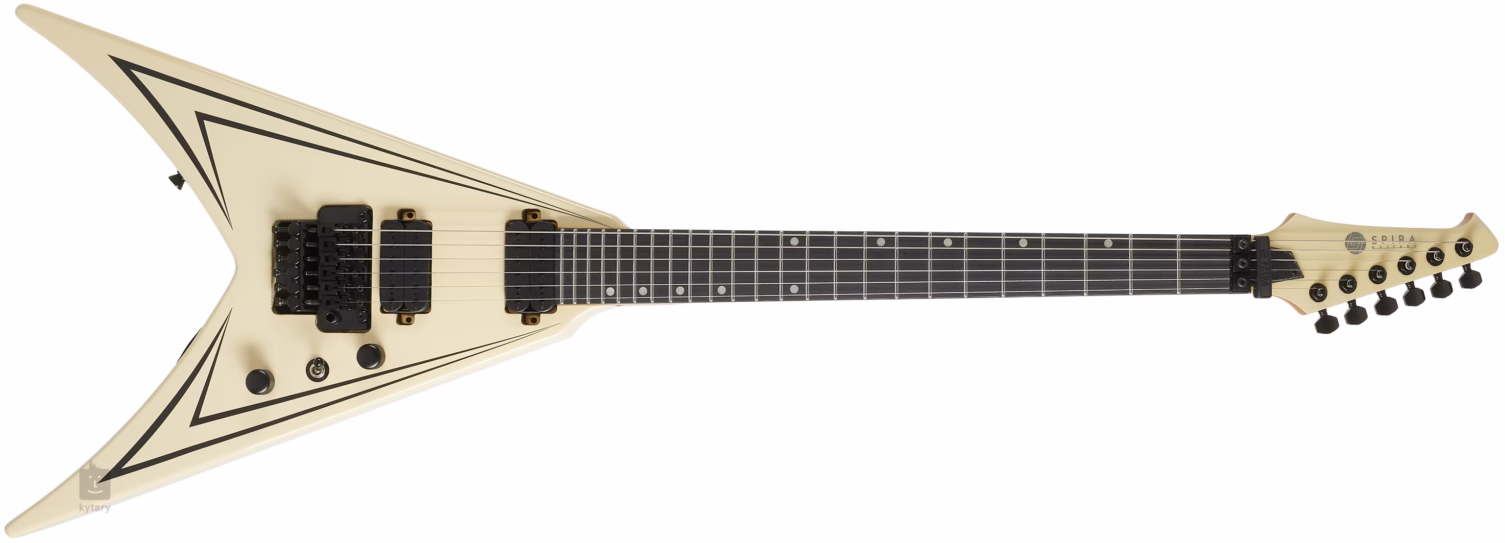 Dva firemní humbuckery Spira Villain s keramickými magnety a silnějším výstupem poskytují kytaře šťavnatý zvuk, který zvláště oceníte v high-gain nastavení. S nastavením zvuku lze pracovat pomocí standardních ovladačů. Struny jsou uchyceny ve firemních uzamykatelných ladicích mechanikách a v tremolu korejské značky Sung-il. Stylové zpracování podtrhuje černý hardware.