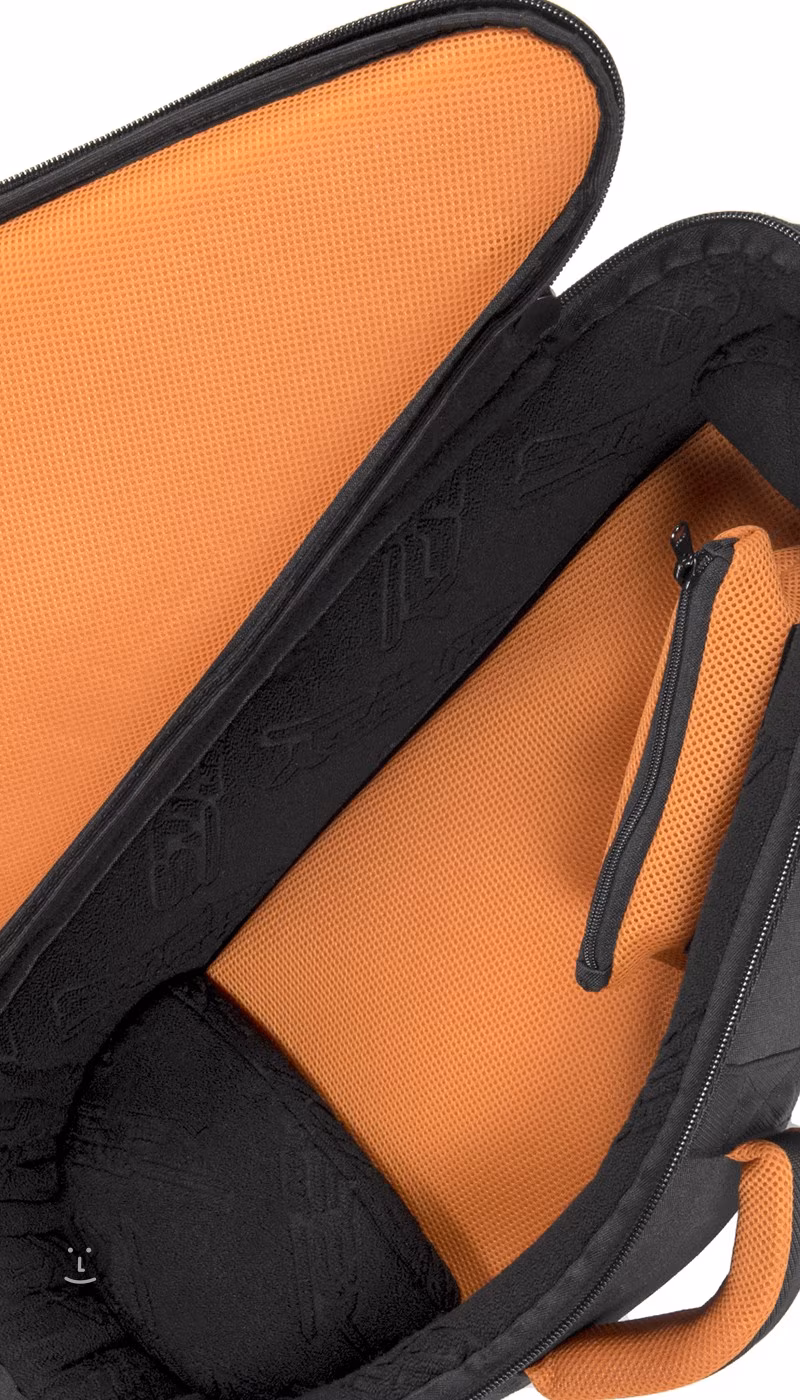 Pouzdro na sopránový saxofon Stefy Line WB1000 Alto sax nabízí vnější plášť zhotovený z voděodolné umělé textilie Ripstop s vysokou pevností, vnitřek z prodyšné tkaniny s 30 mm silným polstrováním (tvrzený polyethylen), pouzdro na smartphone (smartphone sleeve), kapsu pro uložení drobného příslušenství, madlo pro bezpečnou manipulaci s pouzdrem a polstrované popruhy na ramena, takže lze nosit i jako batoh.
