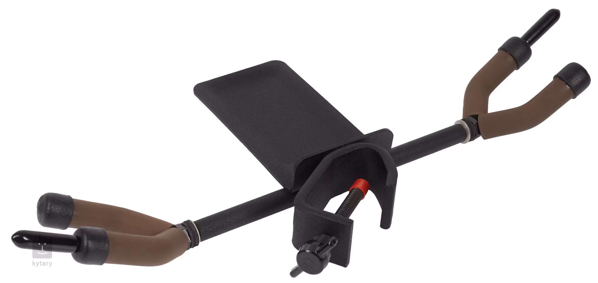 Tato jednoduchá konstrukce s otočným držákem pojme 3/4 a 4/4 housle nebo 13“-17“ violy. Na jednom z konců najdete také držák na smyčec. Bát se nemusíte ani poškození laku, proti poškrábání bezpečně funguje pěnová guma, kterou jsou potažena všechna místa styku držáku s nástrojem. Tento model je vhodný pro dva nástroje a uchycení na stojany nebo libovolné trubky s rozměrem 1“.