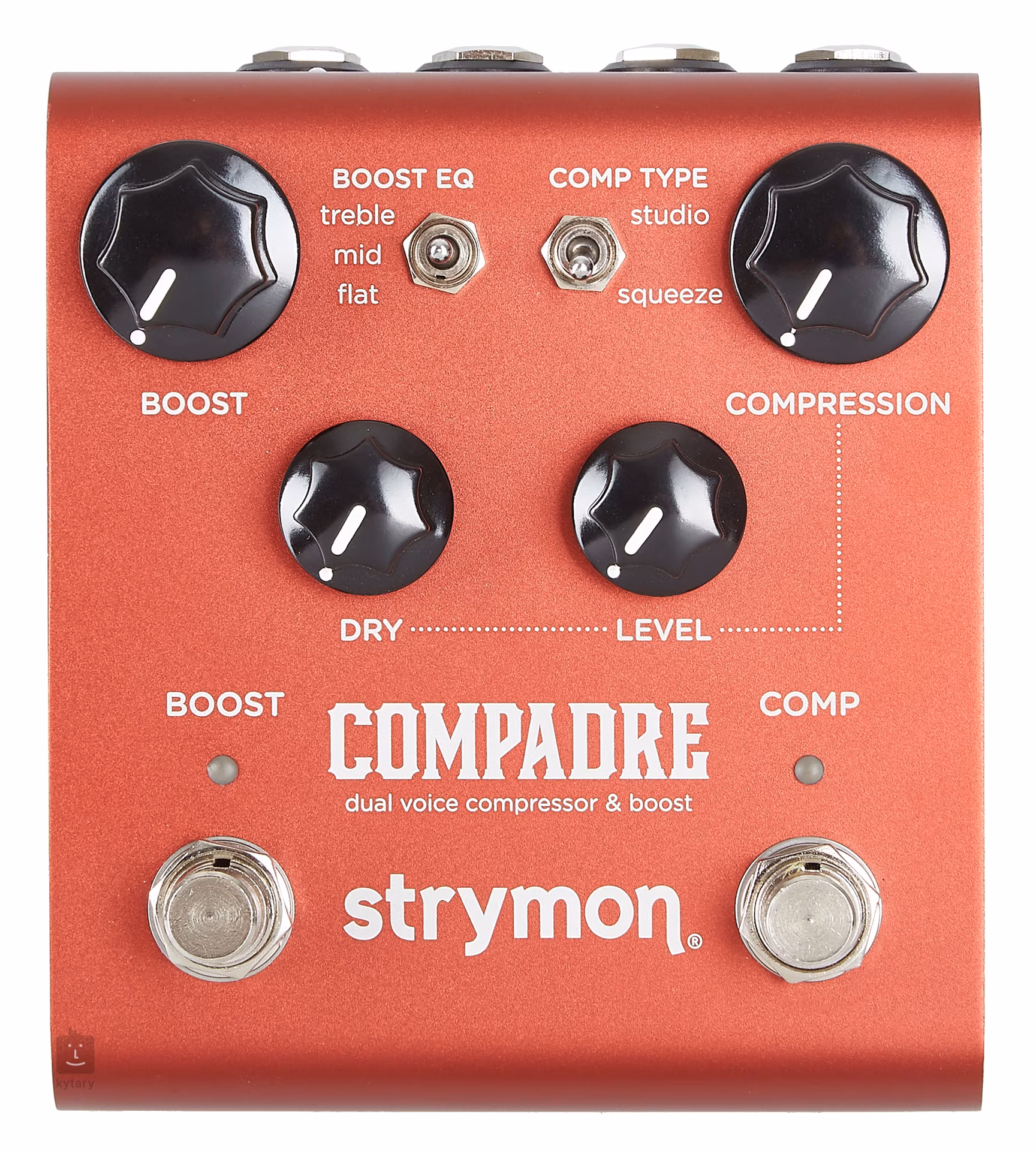 Compadre je špičkový kompresor a booster, který poskytne zvuku vaší kytary či baskytary analogovou kompresi v ryzí studiové kvalitě. Vstupní Class JFET obvod, čistě analogová komprese a muzikálně nastavený analogový obvod boosteru dodají vašemu kytarovému/baskytarovému aparátu zvukový lesk zesilovačů/komb modifikovaných špičkovými výrobci butikových aparátů.