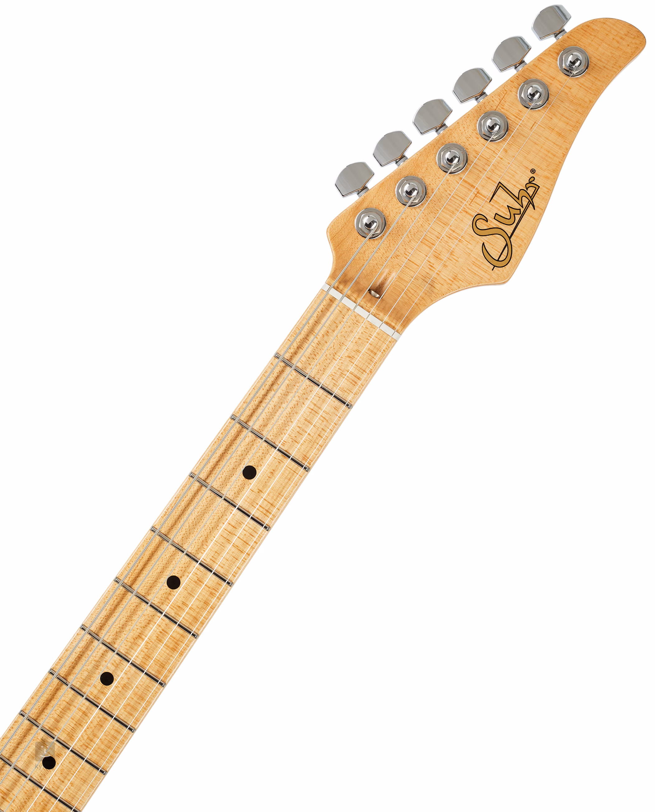 Kombinace kobylkového humbuckeru Suhr SSV a dvou single-coil snímačů Suhr V63 s Alnico V Special magnety poskytují kytaře parádně čistý zvuk s moderním Strat feelem „made by Suhr“ – navíc díky technologii SSCII zcela bez charakteristického otravného šumu single-coilů. Ke standardním úpravám zvuku slouží ovladač hlasitosti, dvě tónové clony a pětipolohový přepínač snímačů.