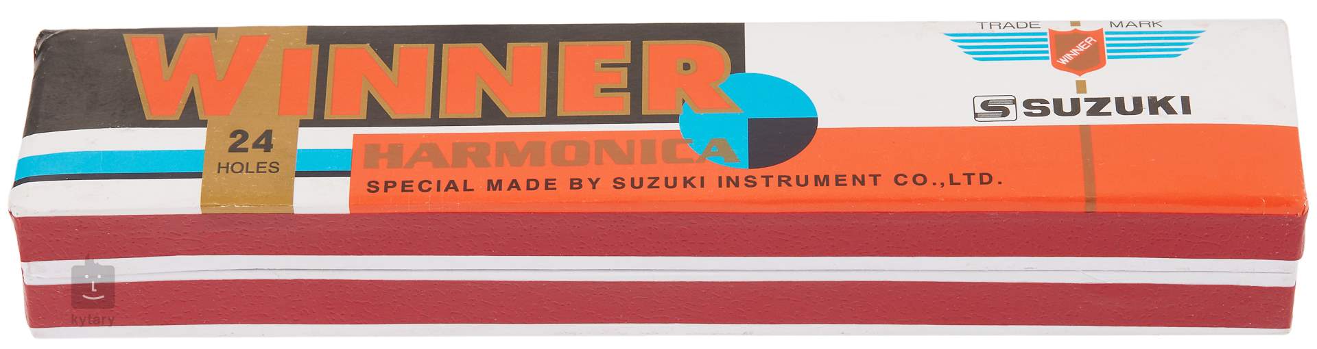 Suzuki W-24 C Winner je základní model tremolo harmoniky se čtyřiadvaceti dvojitými otvory, korpusem z plastového materiálu ABS, kryty z nerezové oceli a mosaznými hlásky. Nástroj je dodáván v papírové krabičce.