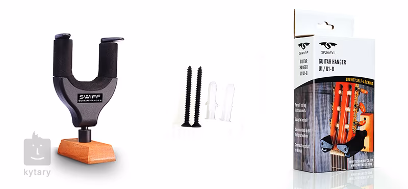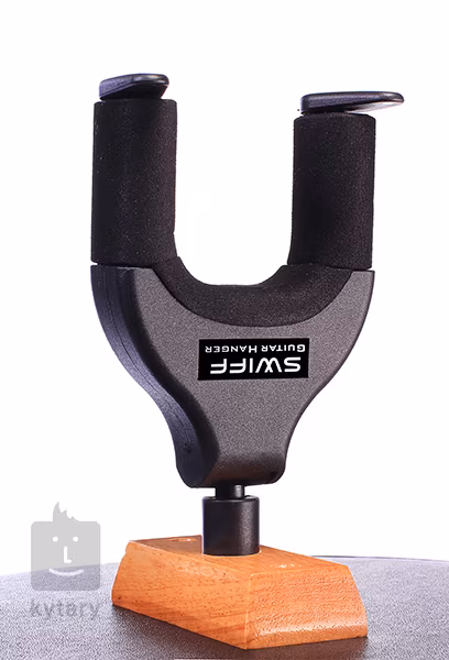 Kytarový věšák Swiff U1 nabízí perfektní řešení pro zavěšení vašeho nástroje. Disponuje ochrannými zámky, které se při vložení nástroje automaticky zavřou a zabrání tak jeho pádu a případnému poškození. Otočná hlava věšáku se přizpůsobí různorodým tvarům kytarových hlav i jiným nástrojům, takže spolehlivě udrží akustiku, klasiku, elektriku, baskytaru, mandolínu nebo například banjo. Všechny části věšáku, které se dotýkají nástroje, jsou vystlané měkkou pěnou, takže se nemusíte obávat poškrábání. Tento model má bytelnou dřevěnou základnu, která bude skvěle vynikat v jakémkoliv interiéru.