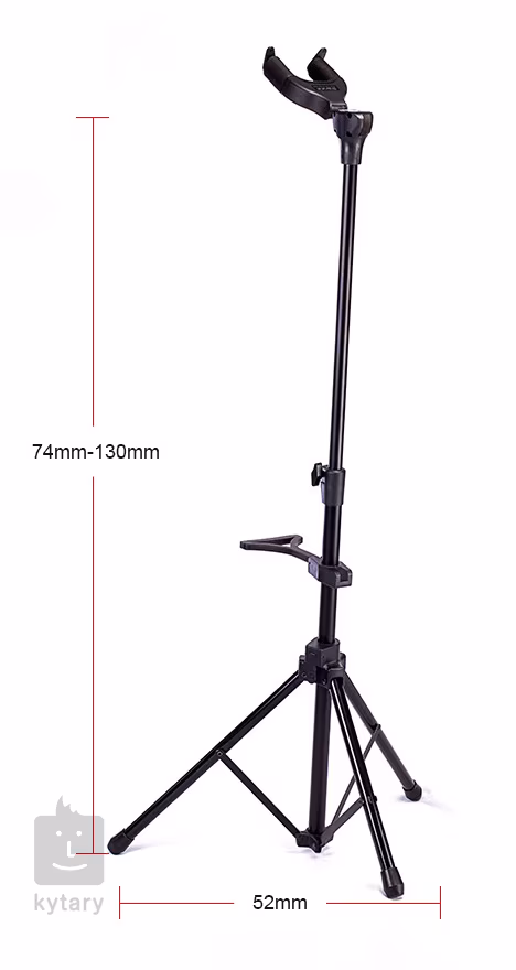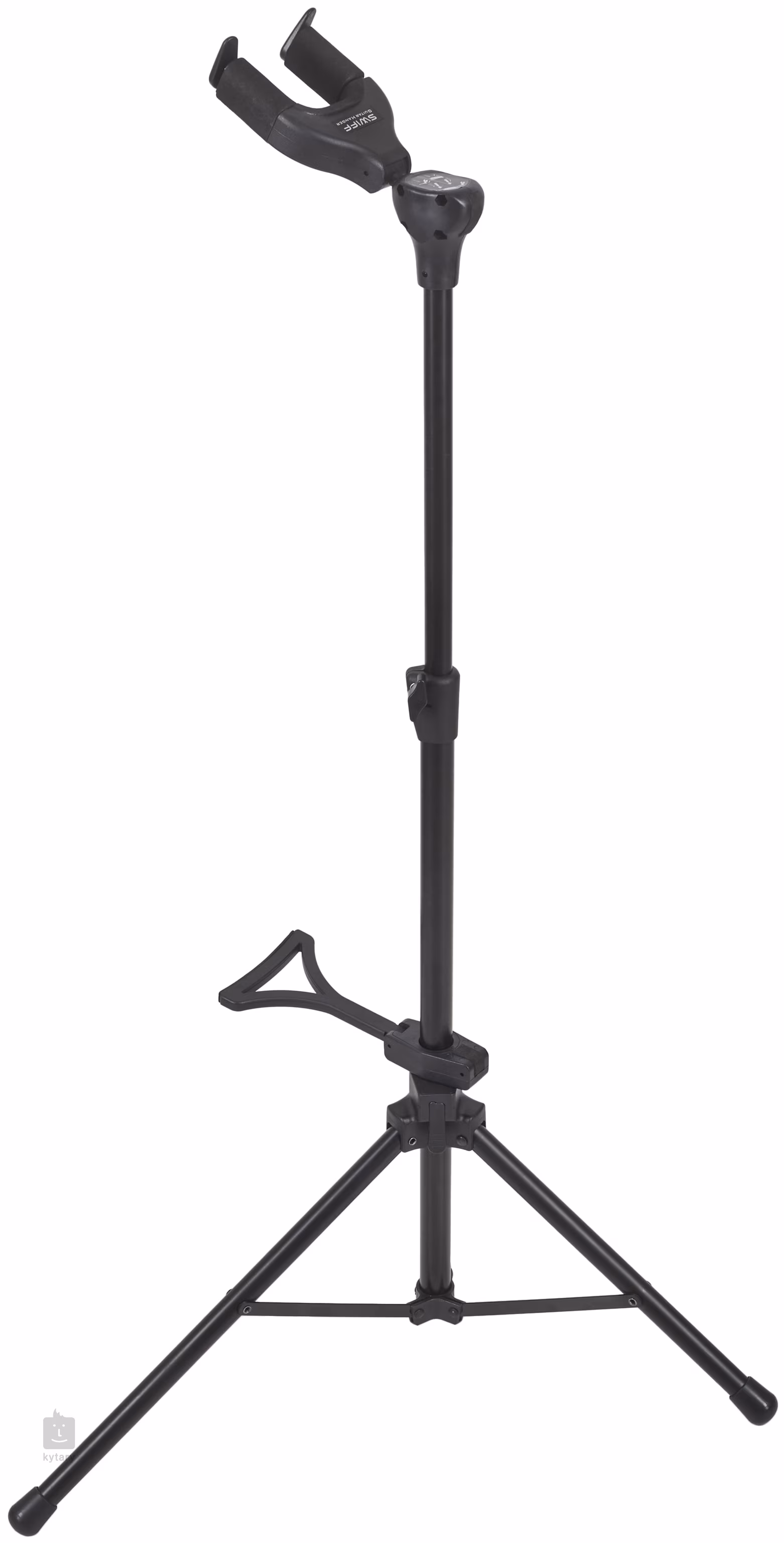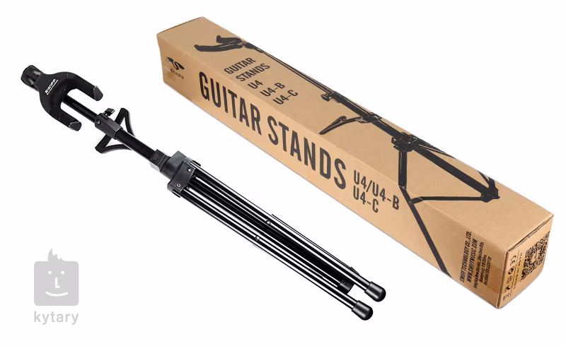 Kytarový stojan Swiff U4-B je stabilní skládací stojan na trojnožce, díky němuž bude váš nástroj vždy po ruce a v bezpečí. Hlava stojanu disponuje ochrannými zámky, které se při vložení kytary automaticky zavřou a zabrání tak jejímu pádu a případnému poškození. Zároveň je vystlaná měkkou pěnou, takže se nemusíte obávat poškrábání. Ve spodní části se kytara opírá o gumový nástavec. Stojan je vhodný pro akustické i elektrické kytary.