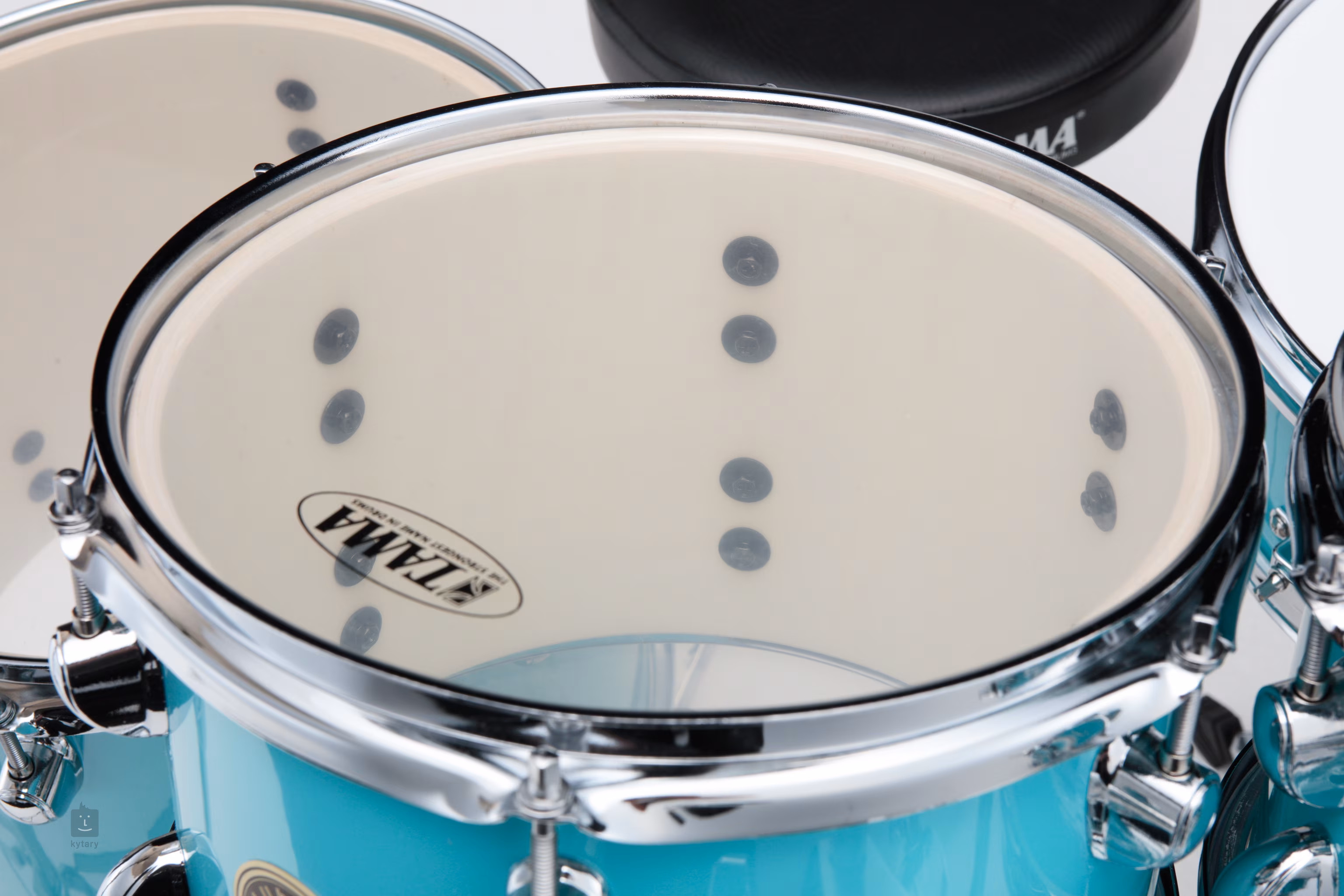 Vintage charakter podtrhují praktické detaily, jako je držák činelů uchycený přímo na basovém bubnu nebo zahnuté nohy basového bubnu, které zajišťují stabilitu a osobitý vzhled. Chromovaný hardware dodává sadě odolnost a profesionální vzhled, zatímco laminovaný povrch zajišťuje snadnou údržbu a dlouhou životnost.