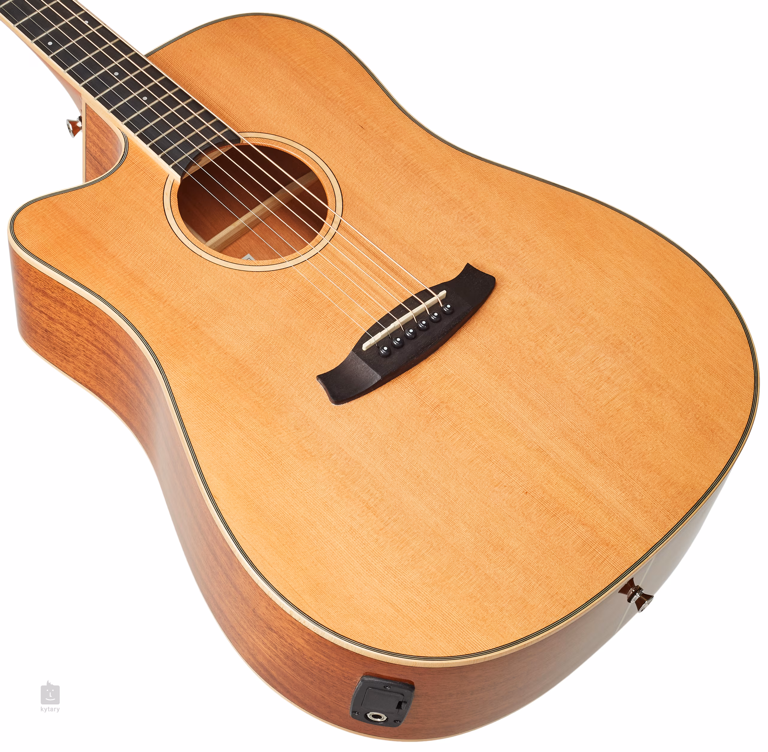 Možnost ozvučení nabízí firemní preamp TW Premium Plus s čtyřpásmovým ekvalizérem, funkcí Phase a integrovanou ladičkou. Struny jsou přes nultý a sedlový pražec z materiálu NuBone uchyceny v chromovaných die-cast mechanikách a kobylce z kompozitu. Pěkné zpracování podtrhuje oboustranná javorová lemovka těla doplněná černobílými linkami a javorová rozeta.