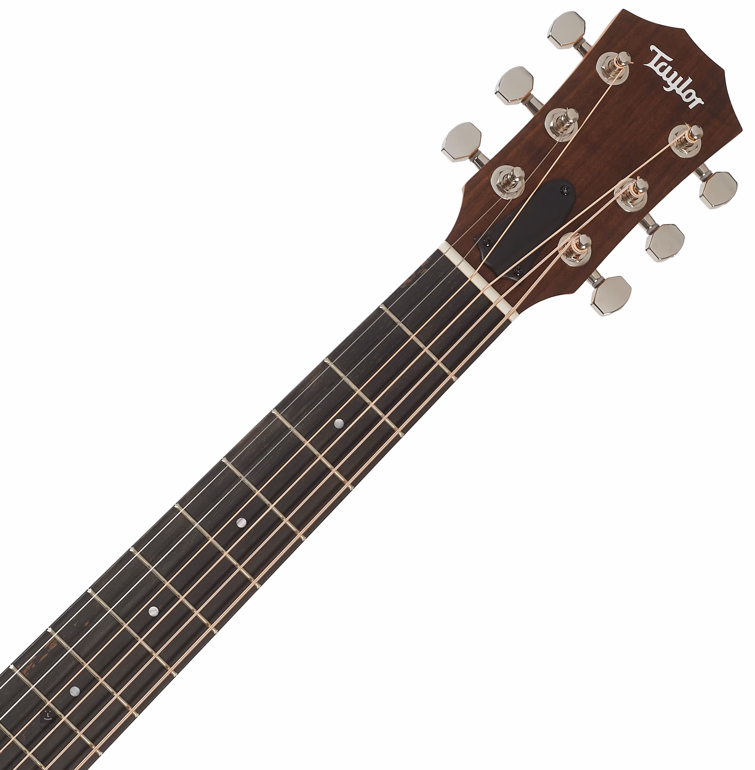Kytara je osazena kvalitní firemní elektronikou. Taylor Expression System 2 používá tři speciálně navržené a individuálně kalibrované piezoelektrické snímače umístěné za kobylkou. Na rozdíl od konvenčních snímačů nesnímají pohyb desky nahoru a dolu, ale přirozené vibrace kobylkového sedla vpřed a vzad. Zvuk nástroje je tak mnohem přirozenější, barevnější a příjemnější a lépe reaguje na dynamiku vaší hry. Zároveň je díky novému preampu signál o 25 % silnější. Samozřejmostí je eliminace zpětné vazby a možnost nastavit hlasitost, basy a výšky.