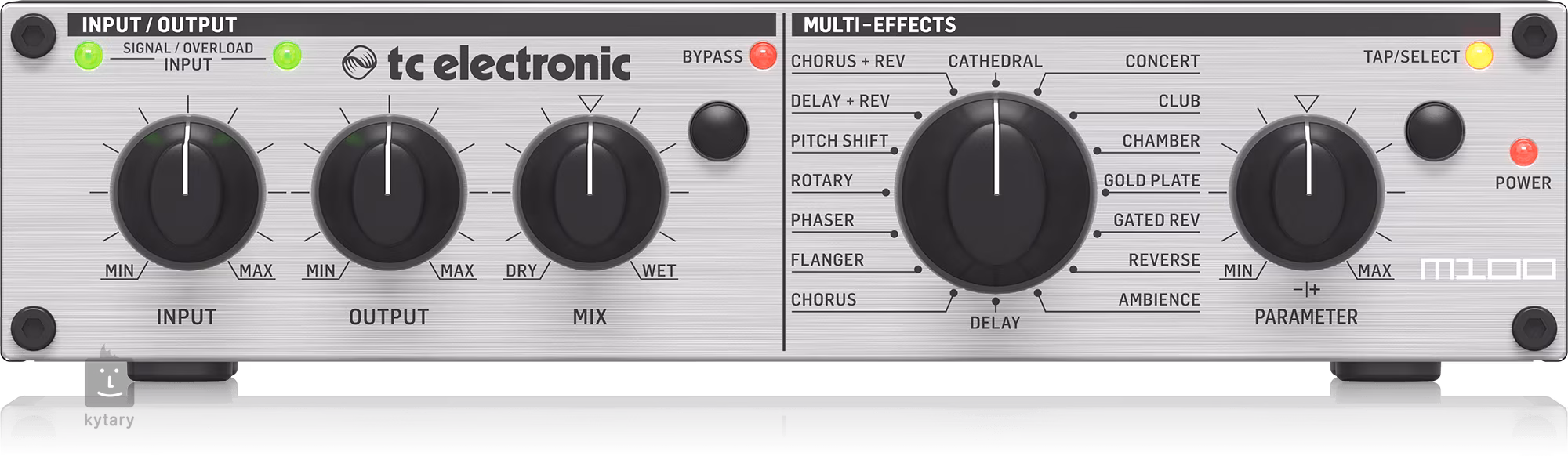 M100 obsahuje 16 oceňovaných presetů TC ELECTRONIC včetně reverb, delay, chorus, flanger, phaser, rotary, pitch shifter a různých kombinací.