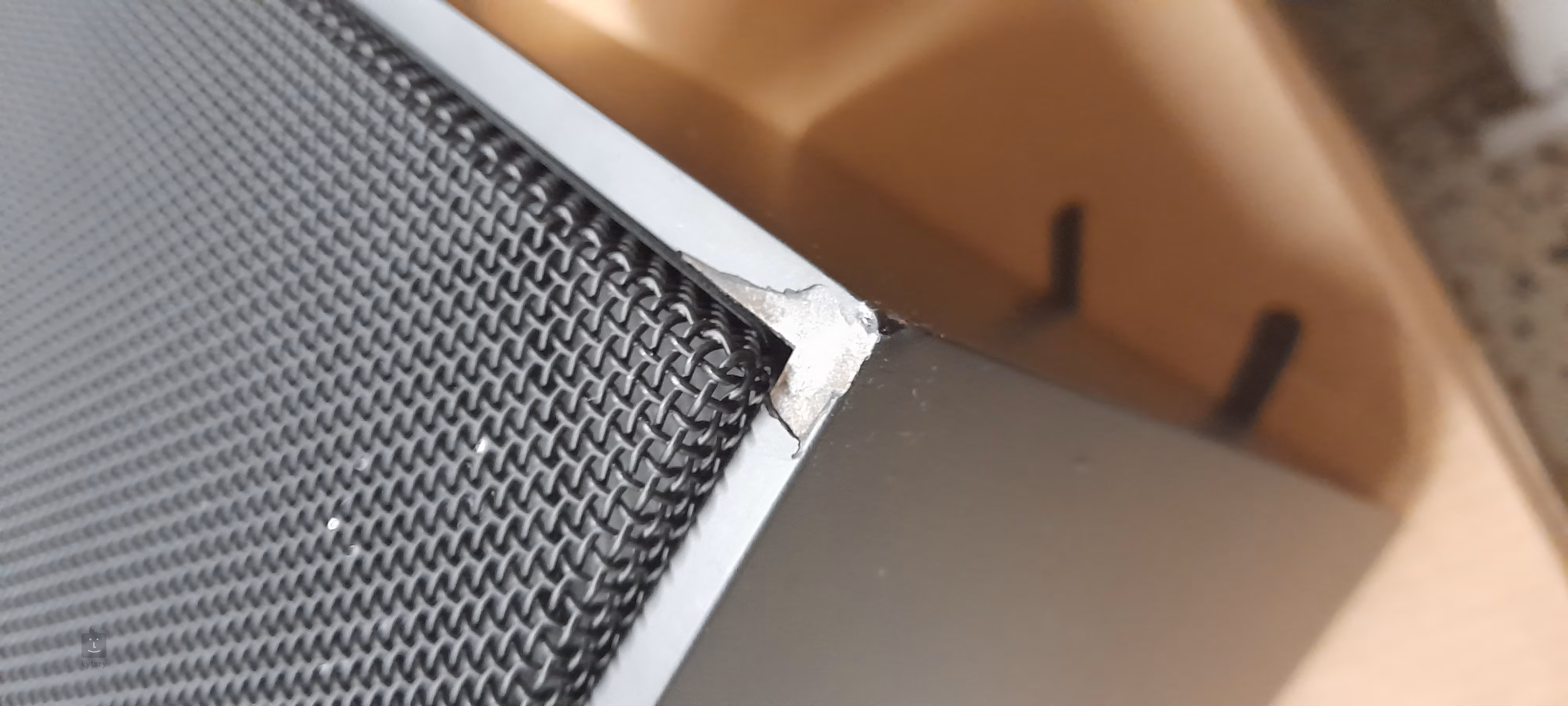 Poškozené zboží - odřený lak na rohu (viz foto). Zdeformovaná, nevzhledná kartonová krabice.