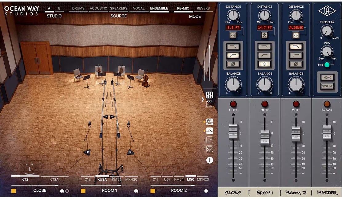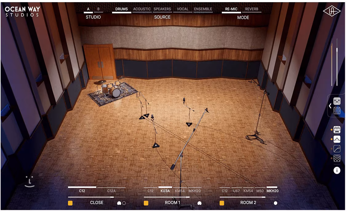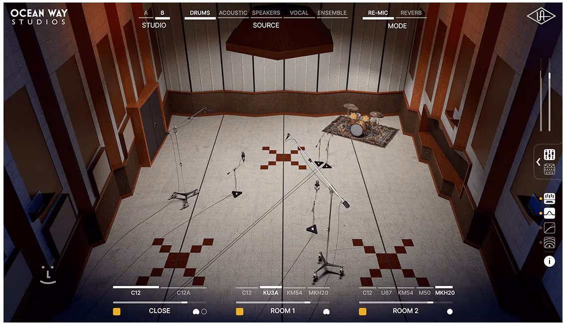 Plug-in nabízí dva hlavní pracovní režimy. V režimu Reverb můžete svým stopám přidat přirozenou atmosféru a dozvuk nahrávacích místností nebo jedné ze tří historických reverb komor, které navrhl sám Bill Putnam Sr. Pro naprostou transformaci zvuku je tu režim Re-Mic, který vaši nahrávku kompletně „přenahraje“ ve virtuálním studiu. Tento proces simuluje přehrání zvuku přes studiové monitory a jeho opětovné zachycení pomocí sady 13 emulovaných mikrofonů, které můžete libovolně polohovat. Zvuk navíc můžete tvarovat pomocí emulací legendárního vybavení, jako jsou kompresory Fairchild 670, 1176LN, LA-2A nebo ekvalizéry z konzolí Focusrite a Dalcon.