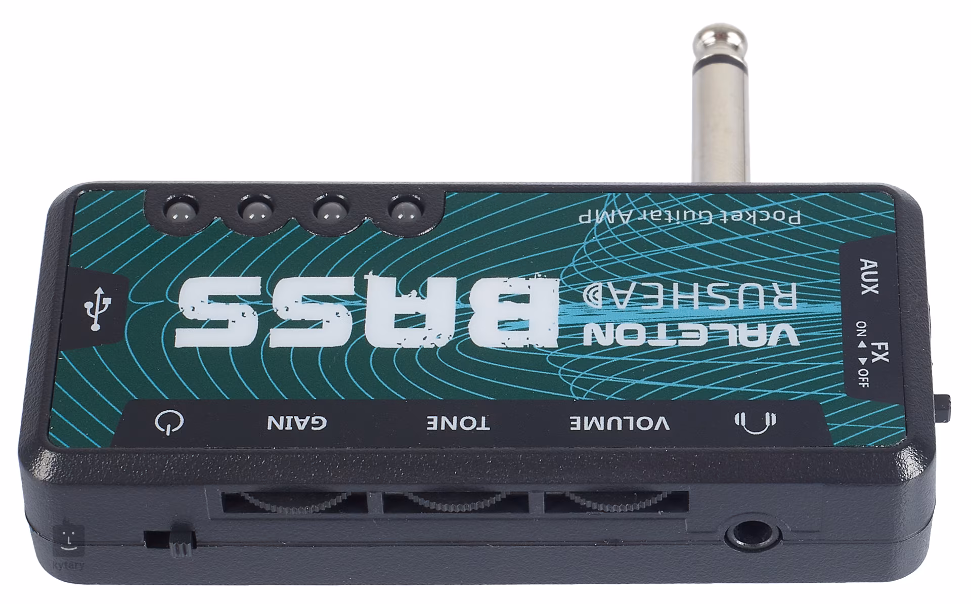 Rushead Bass je praktický baskytarový sluchátkový zesilovač s dobíjením 5V Li-ion baterie přes USB a výkonem až pět hodin na jedno dobití, Aux in vstupem pro nerušené jamování do vašich oblíbených skladeb, ovladači Volume, Tone a Gain pro upravení zvuku do požadované podoby a vypínatelnou efektovou jednotkou (chorus a reverb). Součástí balení je napájecí USB kabel.