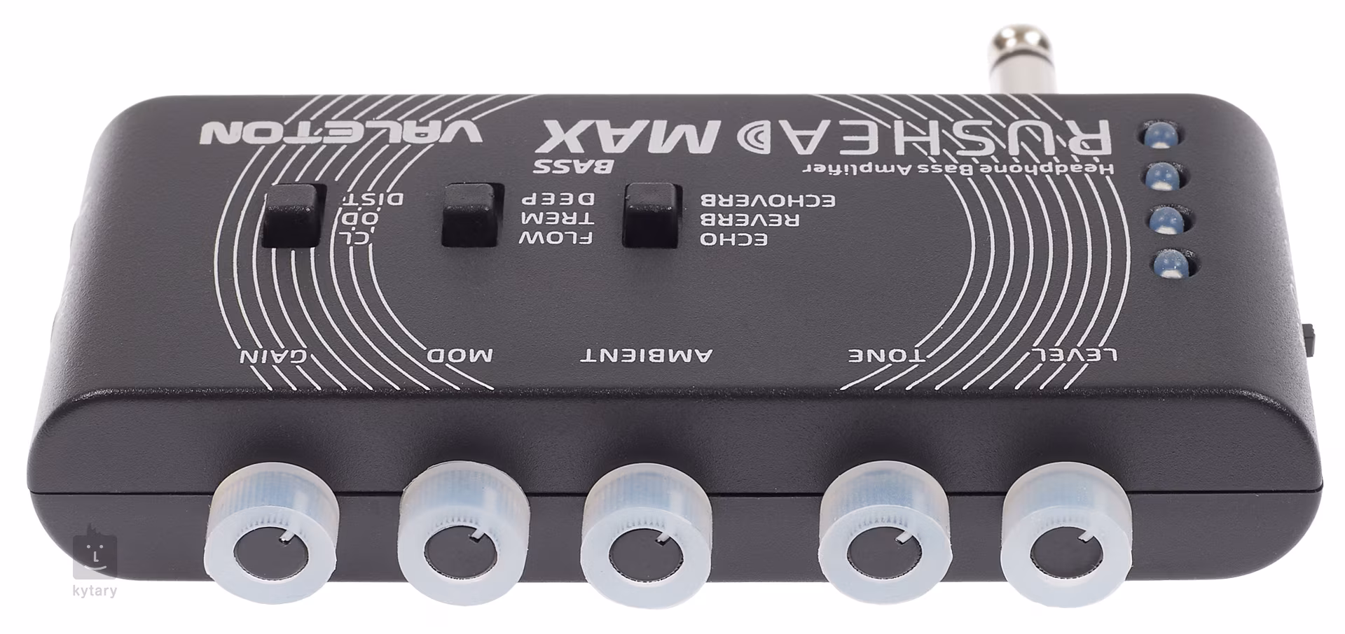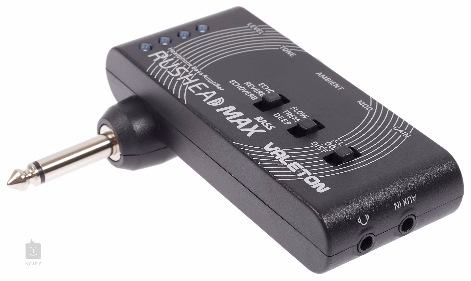 Rushead Bass Max je vylepšený model praktického baskytarového sluchátkového zesilovače s dobíjecí USB Li-ion baterii a výkonem až pět hodin na jedno dobití. Tento model vám nabídne široké zvukové možnosti – od krásně čistého zvuku, přes jemně nakřáplý overdrive, až po masivní zkreslení – které lze detailně ovládat pomocí pětice potenciometrů. K dispozici pak máte také dvě efektové jednotky, které vám nabídnou efekty jako chorus, tremolo, flanger, reverb či echo. Kromě sluchátkového výstupu najdete na zesilovači také Aux vstup, díky kterému můžete nerušeně jamovat do vašich oblíbených skladeb. Součástí balení je napájecí USB kabel.