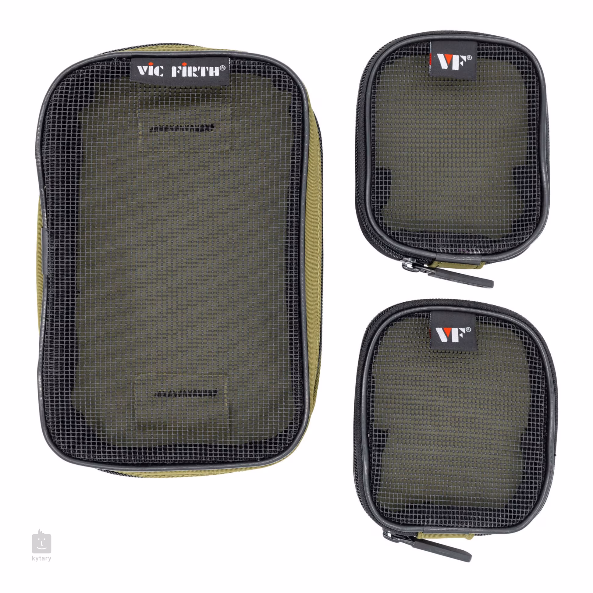 Tři pouzdra různých velikostí umožňují flexibilní uspořádání – můžete je používat dohromady jako jeden systém nebo samostatně podle aktuálních potřeb. Díky přizpůsobeným rozměrům přesně pasují do kapes výše zmíněných obalů Vic Firth.