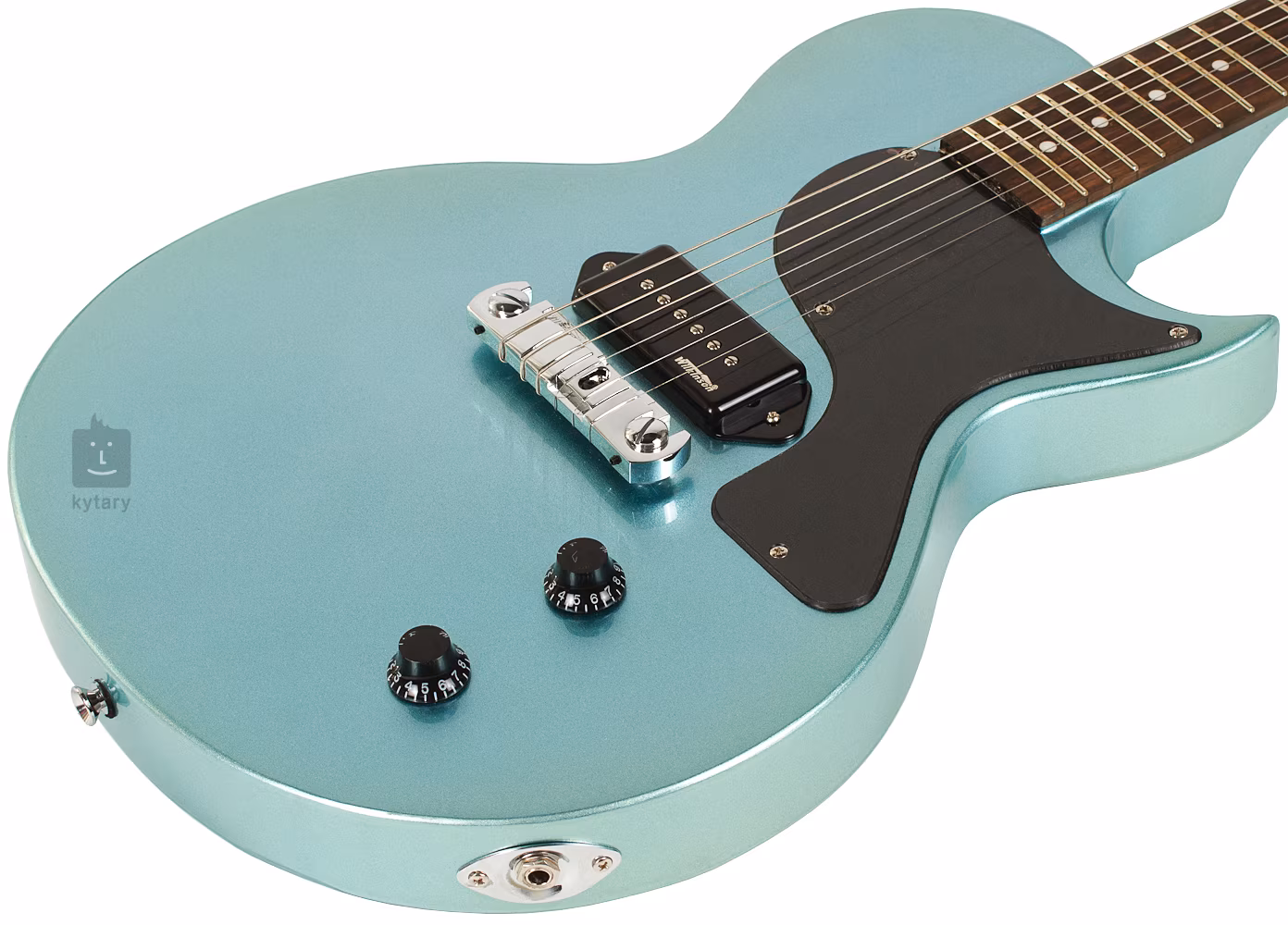 Kobylkový snímač značky Wilkinson v dogear designu poskytuje kytaře klasický průrazný zvuk single-coilů. Jeho kontury upravíte pomocí standardních ovladačů. Struny jsou ukotveny v mechanikách Wilkinson Deluxe a struníku. Pěkné zpracování podtrhuje barevná úprava Gun Hill Blue a černý pickguard.