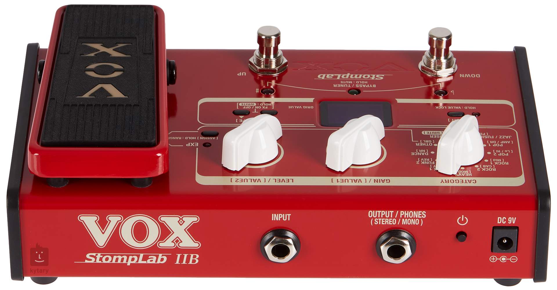 To vše je zabudované v odolném kovovém šasi. K napájení multiefektu slouží 9V adaptér (není součástí balení) nebo čtyři AA baterie.