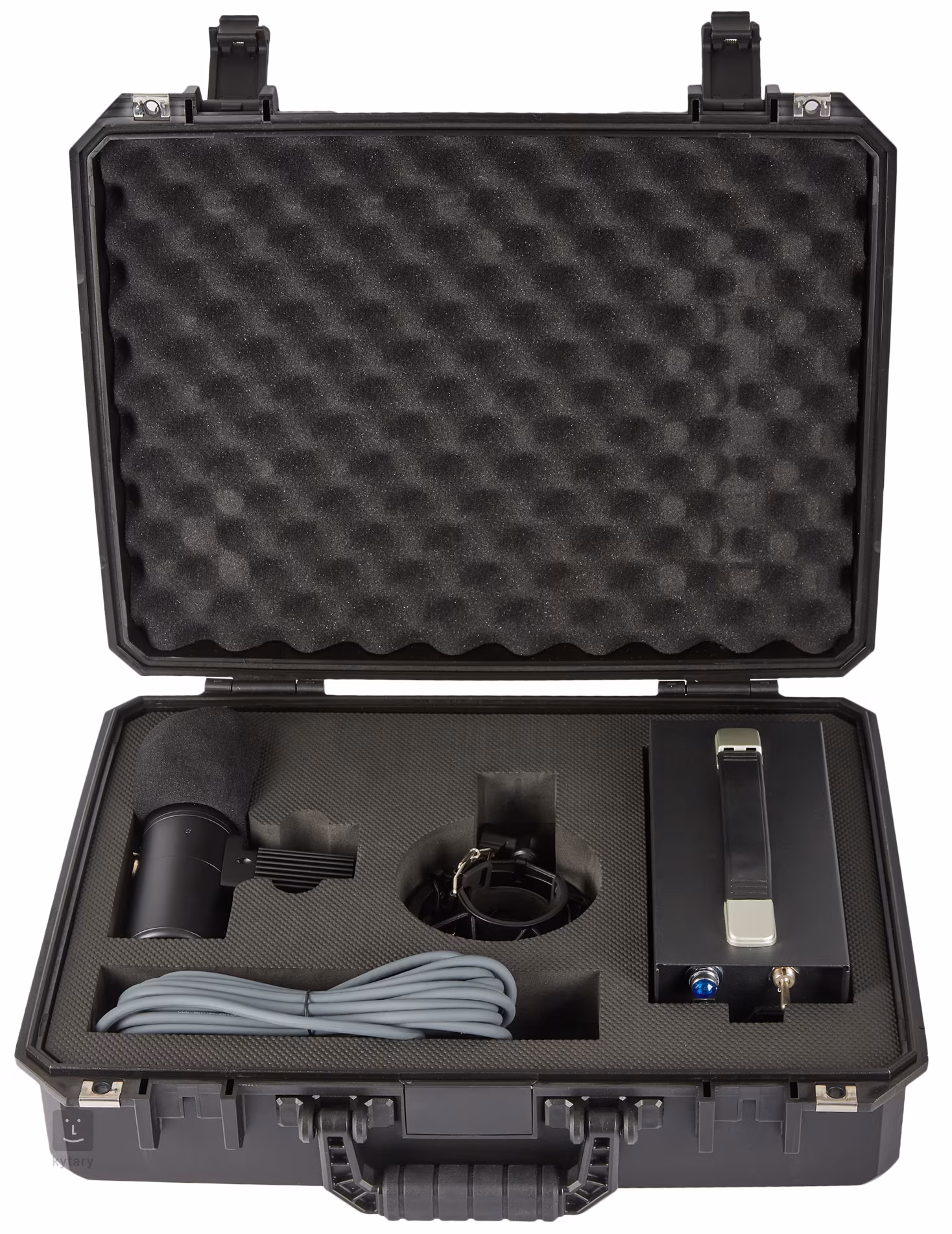 Součástí balení je mikrofon WA-8000, externí napájecí zdroj, 7-pin kabel Gotham GAC-7, napájecí síťový kabel, držák typu “pavouk” a pevný kufřík na uložení mikrofonu i příslušenství.
