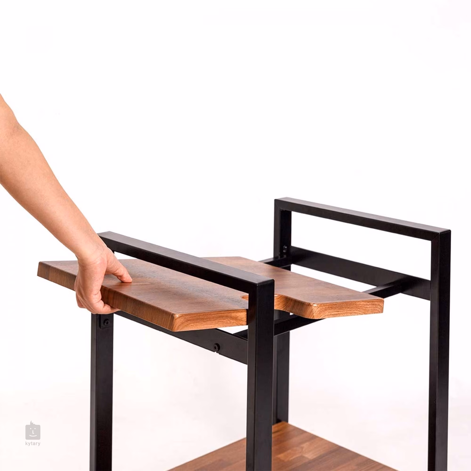 Stylová skříňka se dvěma policemi vhodná pro vaše nahrávací studio nebo obývací pokoj. Police jsou odnímatelné a disponují speciálními výřezy pro kabely. Jenga Double je vyrobena kombinací robustní oceli a kvalitního dřeva, stejně jako ostatní studiový nábytek od WAVEBONE.