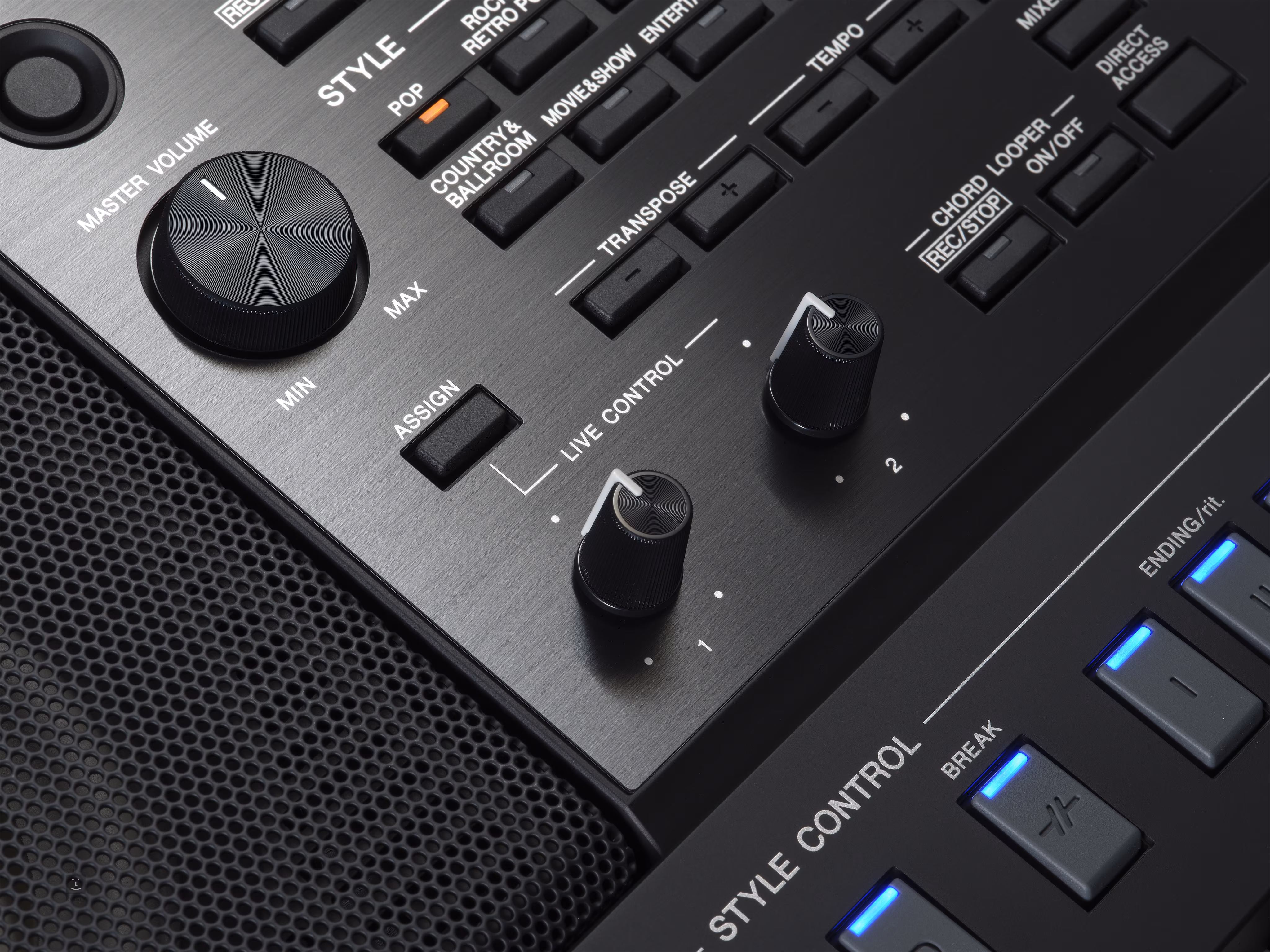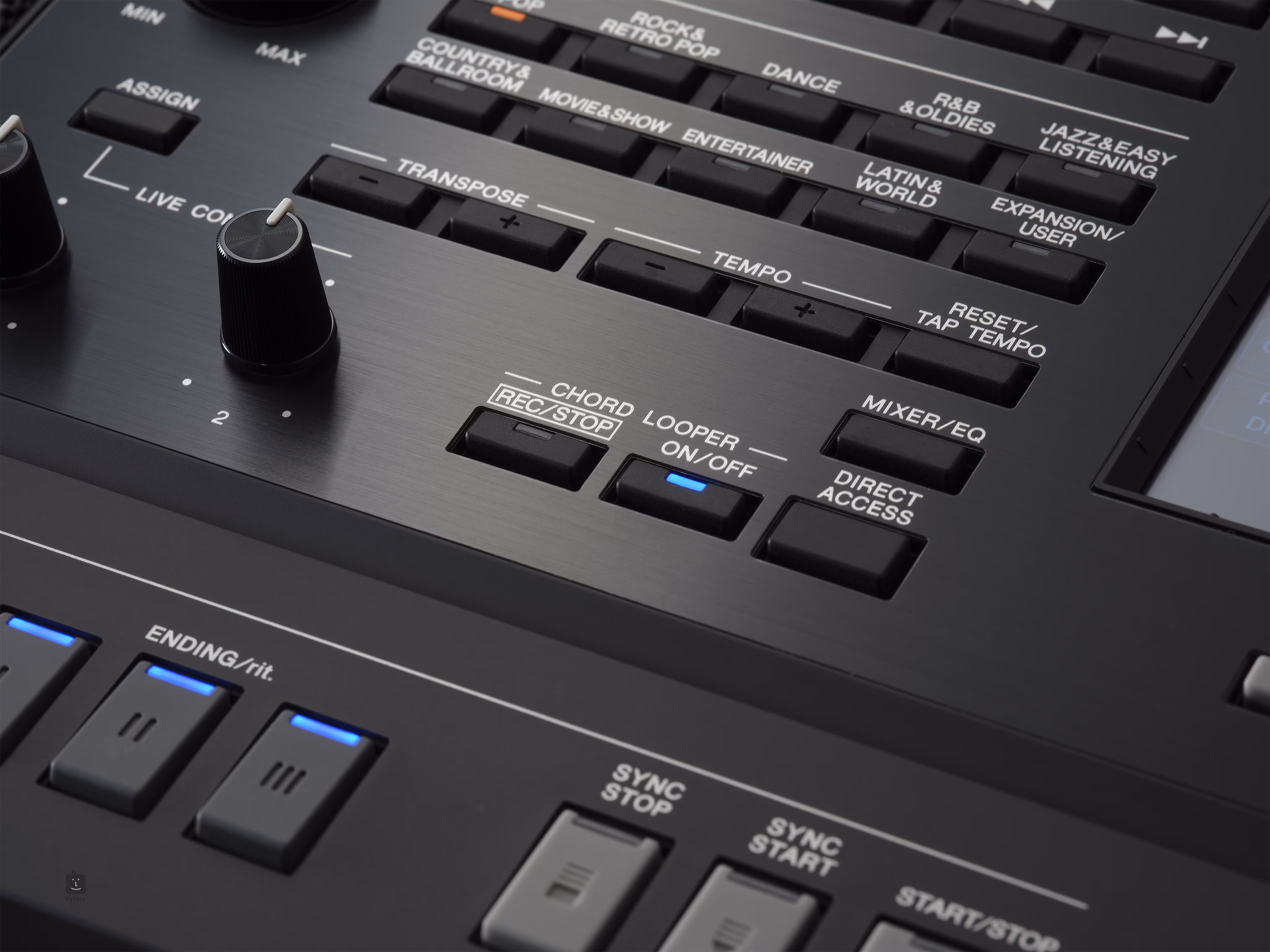 Kdo si nevystačí s akordy, tomu poslouží doprovodné styly, které vám nahradí profesionální kapelu, ale ponechají vám plnou kontrolu nad aranžemi a harmoniemi. K dispozici vám bude také virtuální bubeník, který s vámi udrží tempo i při nečekaných změnách rytmu. Workstation vám umožní nahrávat také své vlastní skladby a zpětně si je přehrávat ve studiové kvalitě. Co nejsnazší navigaci ve skladbách a funkcích zajišťuje sedmipalcový dotykový displej a přehledný ovládací panel, kterému nechybí osm přizpůsobitelných tlačítek pro rychlý přístup k vašim oblíbeným funkcím a dva potenciometry Live Control pro úpravu zvuku přímo během hraní. Ovládání PSR-SX920 je tak maximálně intuitivní a umožňuje neztrácet čas hledáním a plně se soustředit na tvorbu hudby.