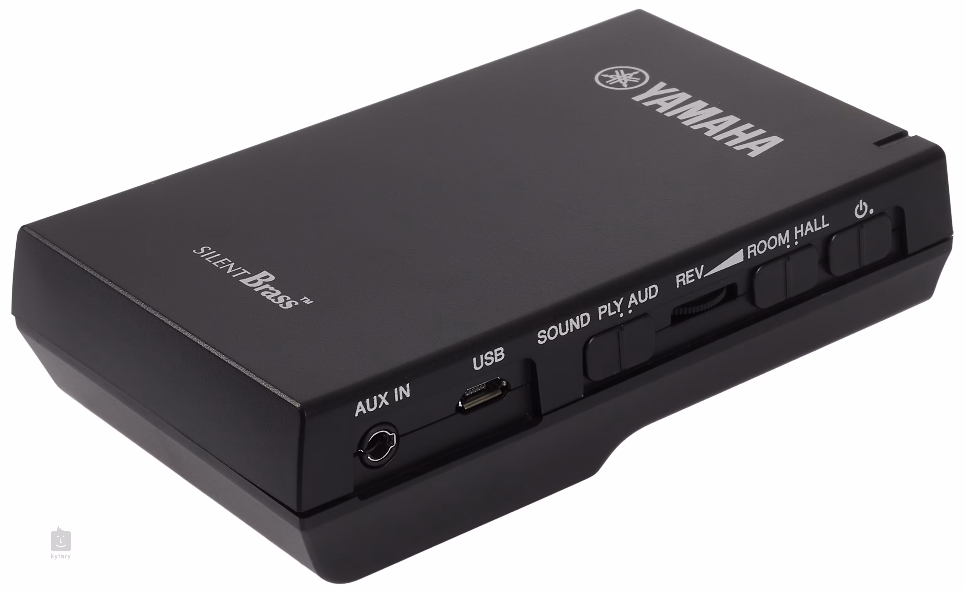 Dusítko na trombon/bastrombon Yamaha Silent Brass SB5J vám umožní hrát a cvičit kdekoliv a kdykoliv budete potřebovat bez ohledu na prostředí, ve kterém se právě nacházíte. Set obsahující lehké kompaktní dusítko se zabudovaným mikrofonem a přenosný sluchátkový zesilovač Personal Studio s pokročilou digitální technologií Brass Resonance Modeling plní nejen funkci standardních dusítek, tj. výrazně snižuje hlasitost nástroje, ale řeší i jejich neduhy (špatná intonace a zvuk) a nabízí řadu dalších funkcí (hru se sluchátky, nahrávání přes USB).