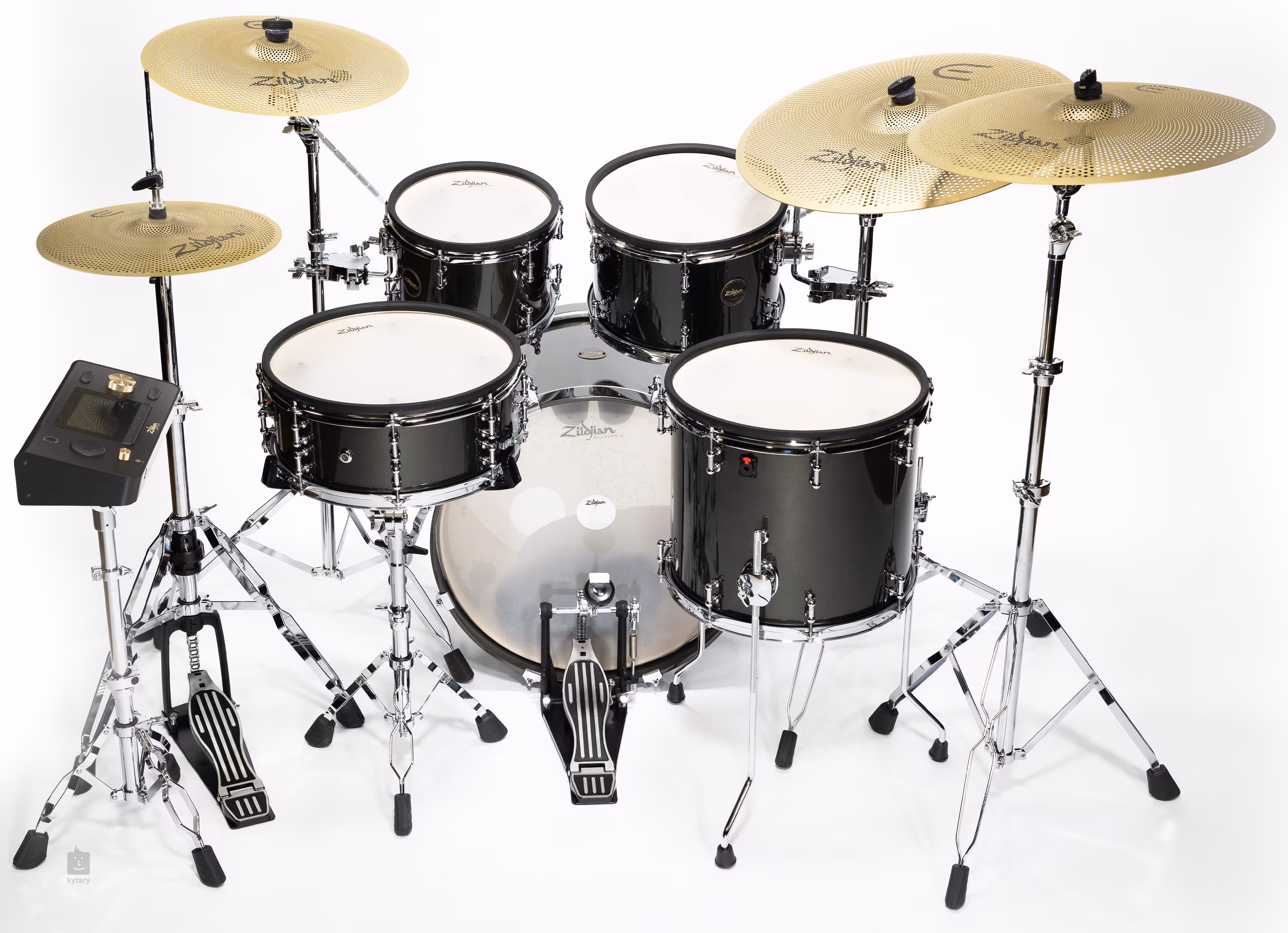 Zildjian E-VAULT, nový elektronický bubenický modul, přináší revoluční autenticitu zvuku, která vás úplně pohltí. Modul nabízí rozsáhlou knihovnu vysoce kvalitních zvuků bicích, činelů a perkusí a umožňuje přístup téměř k celému katalogu činelů Zildjian. Uživatelé mohou tvořit a aktualizovat své ideální sestavy a upravovat osobní zvuk pomocí intuitivní navigace a prémiového 5" barevného dotykového displeje. Soupravy ALCHEM-E, vybavené činely Zildjian E-FAMILY, poskytují nejen dynamické a realistické zážitky, ale také vynikající možnosti pro kreativní hraní a nahrávání.